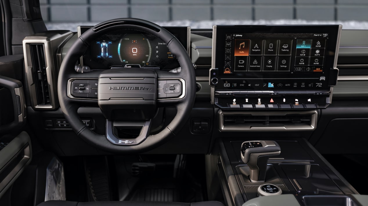 The Hummer's cabin will have spacious seating and seating for five. It will have moon-inspired trim elements such as a moon-boot footprint on the pedal, a white exterior, and a Lunar Horizon interior. A 13.4-inch display screen sits in the center of the dash, and a 12.3-inch instrument panel sits in front of the driver. Features such as Apple CarPlay and Android Auto connectivity will come standard along with a Wi-Fi hotspot and OnStar. A 14-speaker Bose stereo will also come standard with Electric Vehicle Sound Enhancement for a multisensory experience.